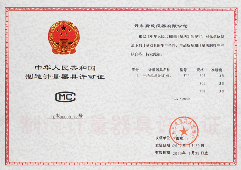 执照计量器具许可证